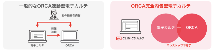 これまで、診療情報をレセプトソフトに自動送信する「連動型」電子カルテは存在していたものの、医療従事者は、電子カルテとは別にレセプトソフトを立ち上げて会計を処理する必要がありました。
