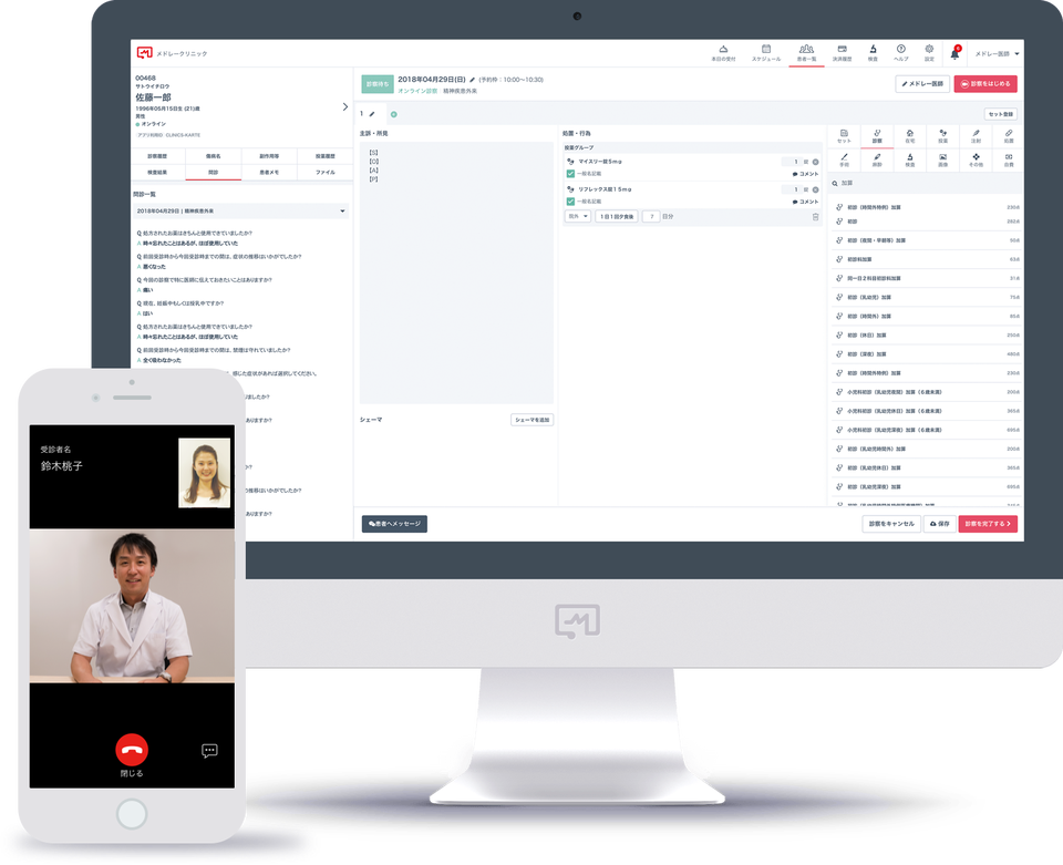 CLINICSカルテは、メドレーが提供するオンライン診療システム「CLINICS」の機能を搭載しています。