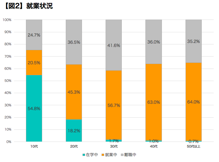 ■就業状況 – 「離職中」の割合は30代が最も高く