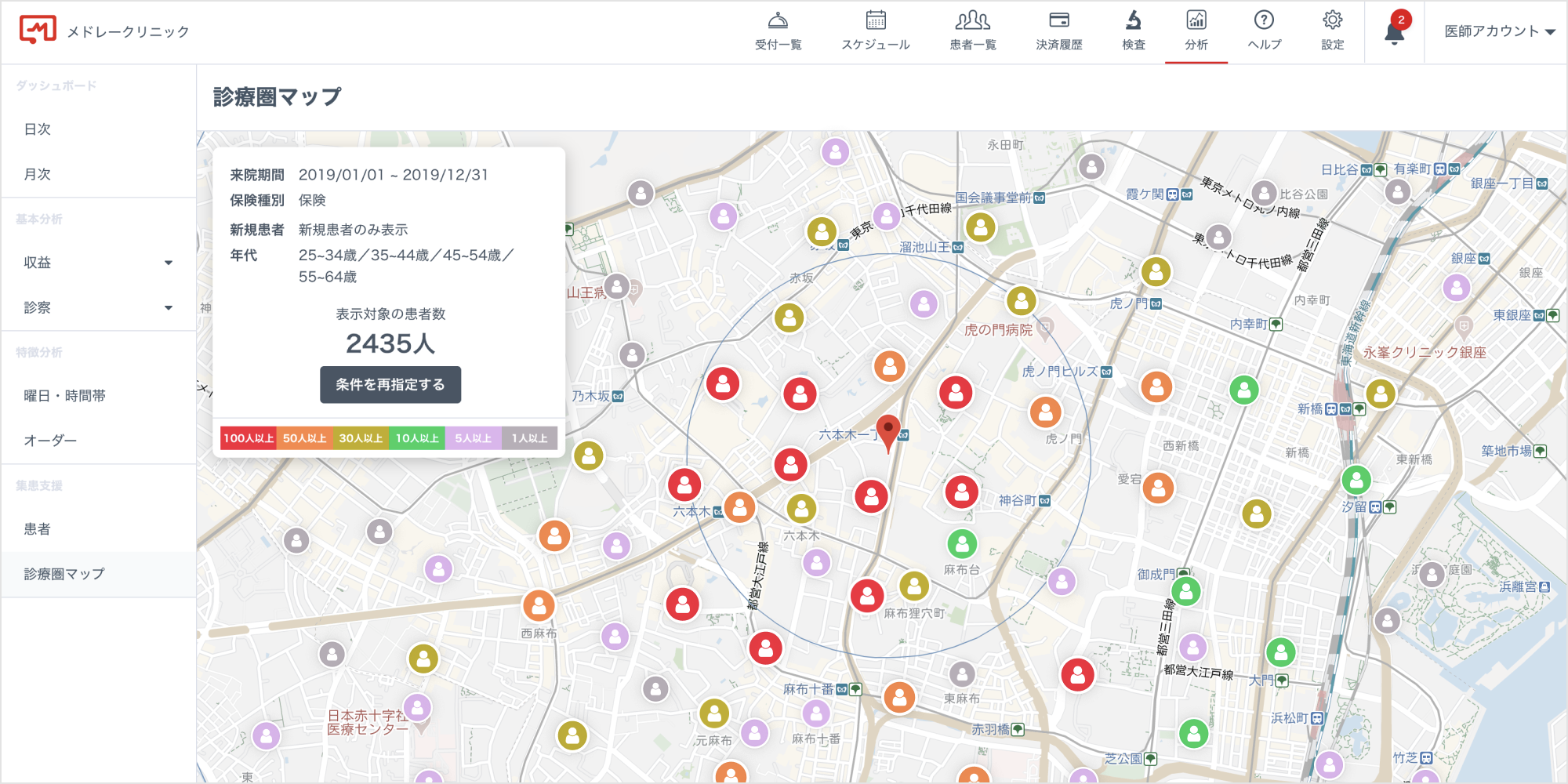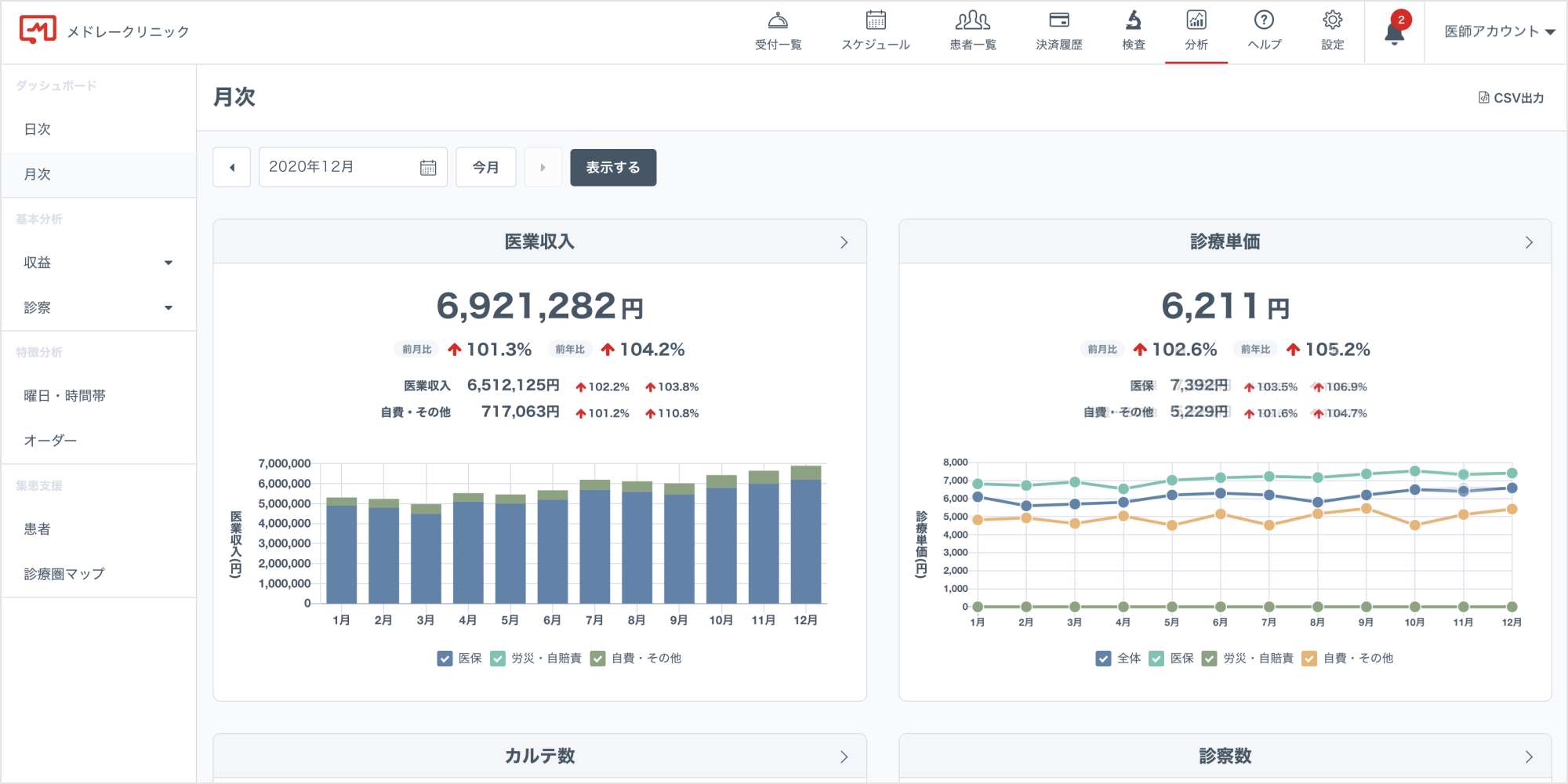 メドレーのクラウド電子カルテ「CLINICSカルテ」、 直感的な操作で多角的な分析ができる「経営分析機能」をリリース 〜収益構造や患者動向・分布を可視化、データに基づいた効率的で患者満足度の高いクリニック運営を支援〜