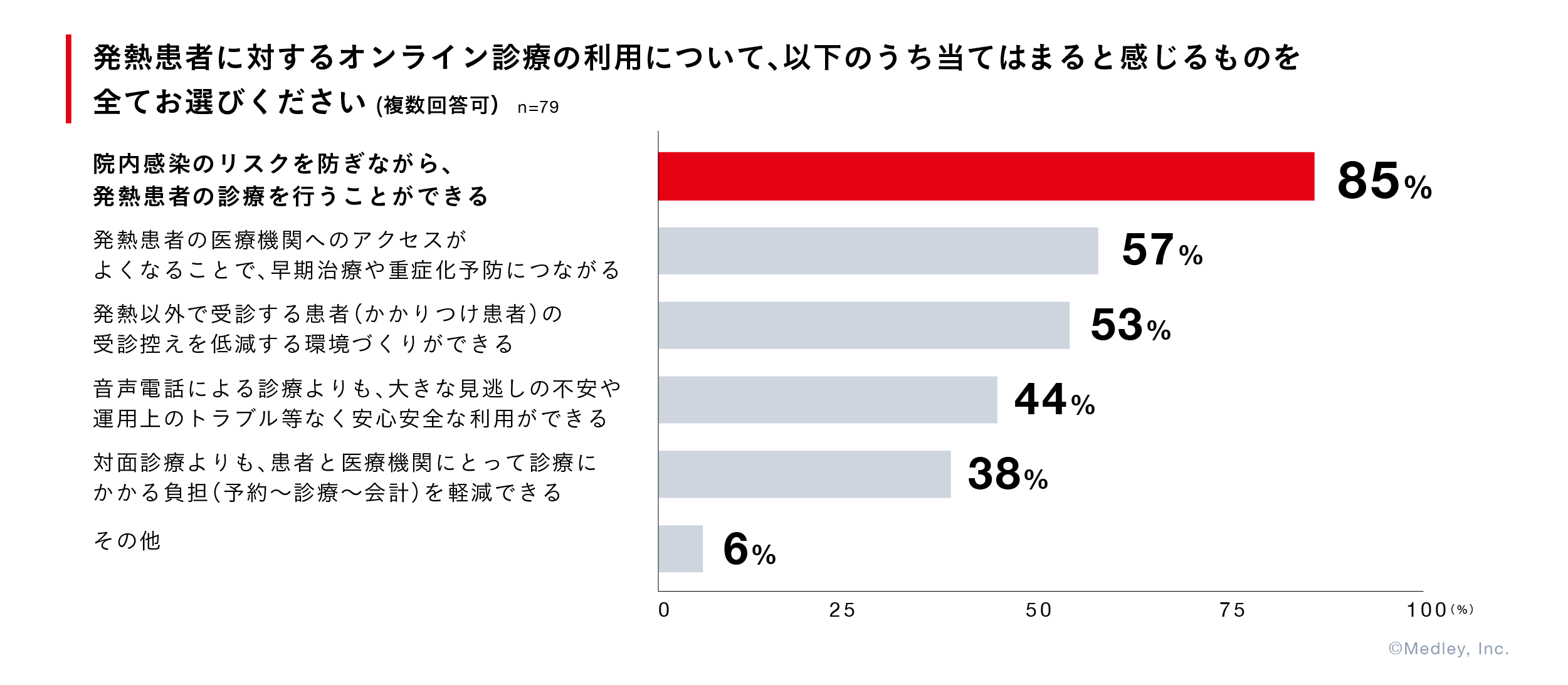 メドレーは、今回の調査結果を踏まえて、導入医療機関や自治体、アカデミア等と連携しながら、発熱患者へのオンライン診療の活用を推進してまいります。