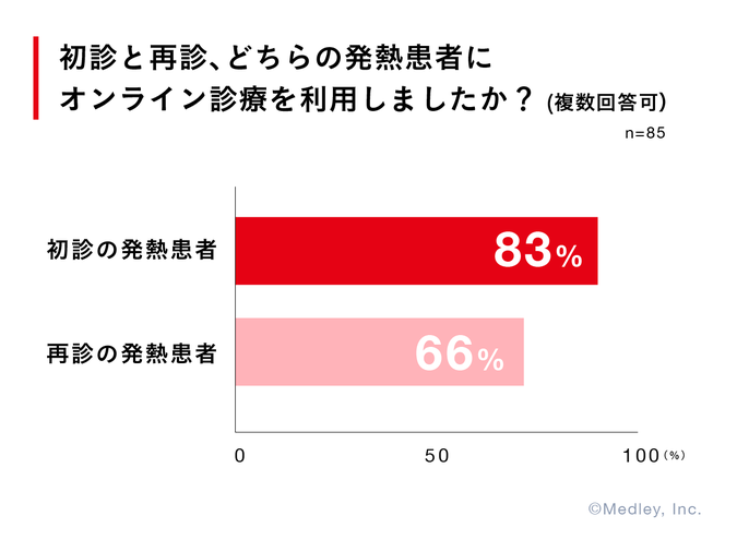 株式会社メドレー(本社:東京都港区、代表取締役社長:瀧口 浩平)は、発熱患者に対するオンライン診療の活用について、昨年から医療機関へのサポートを継続してまいりましたが、この度、CLINICSオンライン診療を利用する医師へアンケートを実施し、その実態や有効性について調査しました。