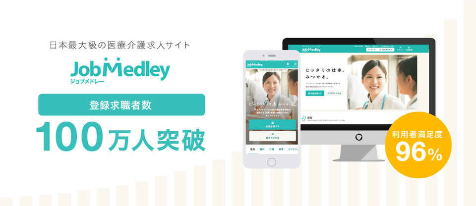 株式会社メドレー(本社:東京都港区、代表取締役社長:瀧口 浩平)が運営する医療介護の求人サイト「ジョブメドレー」は、登録求職者数※1が100万人を突破したことをお知らせします。