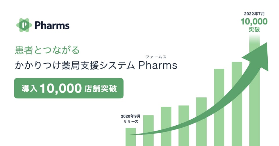 株式会社メドレー(本社:東京都港区、代表取締役社長:瀧口 浩平)は、かかりつけ薬局支援システム「Pharms(ファームス)」が、サービス開始以降約2年で導入1万店舗を突破したことをお知らせします。