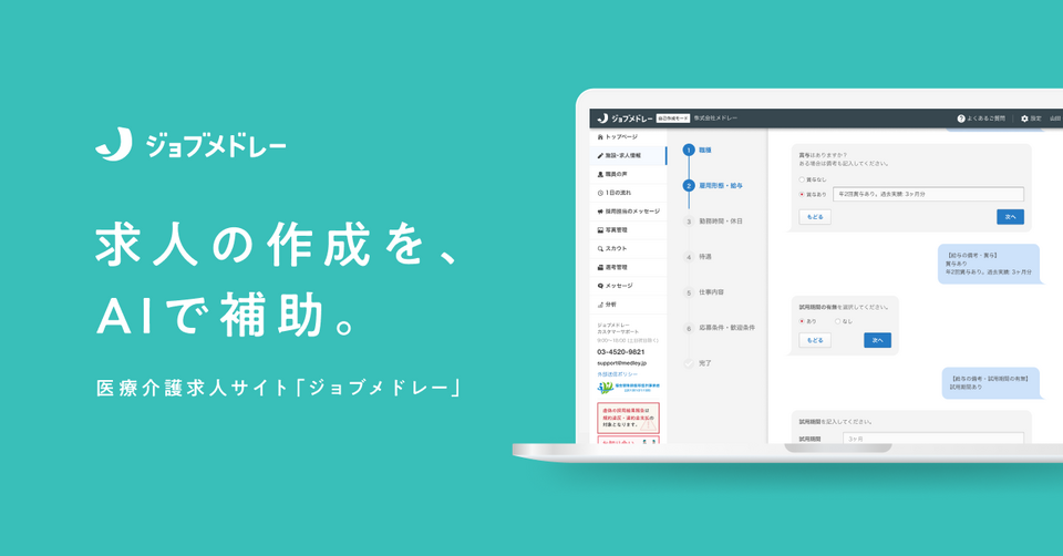 株式会社メドレー(本社:東京都港区、代表取締役社長:瀧口 浩平)が提供する日本最大級の医療介護求人サイト「ジョブメドレー」は、事業所向けに生成AI(Azure OpenAI ServiceのGPTモデル)を活用した求人原稿の作成補助機能を提供開始しました。