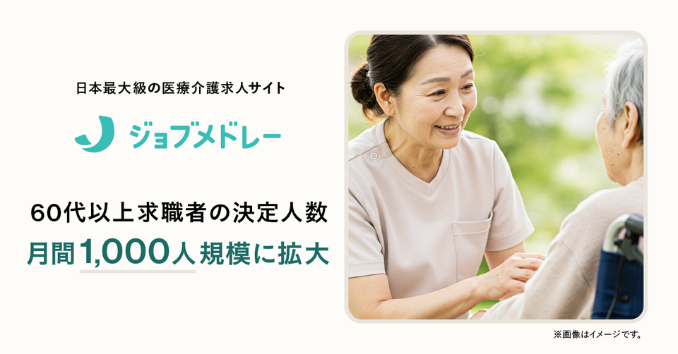 「ジョブメドレー」の60代以上求職者の決定人数が月間1,000人規模まで拡大〜働きたい人に多様な就業機会を提供し、医療介護業界の人材不足解消を支援〜