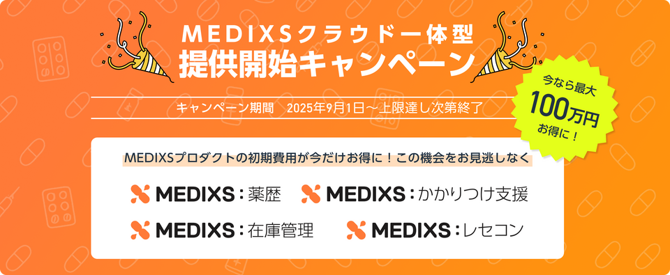 対象システム:「MEDIXS 薬歴」「MEDIXS レセコン」「MEDIXS 在庫管理」「MEDIXS かかりつけ支援」