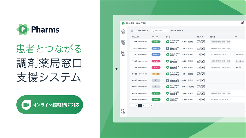 メドレー、オンライン服薬指導にも対応可能な調剤薬局窓口支援システム「Pharms(ファームス)」を提供開始 〜大手調剤チェーンを中心に、全国約1,800店舗の事前申込み〜